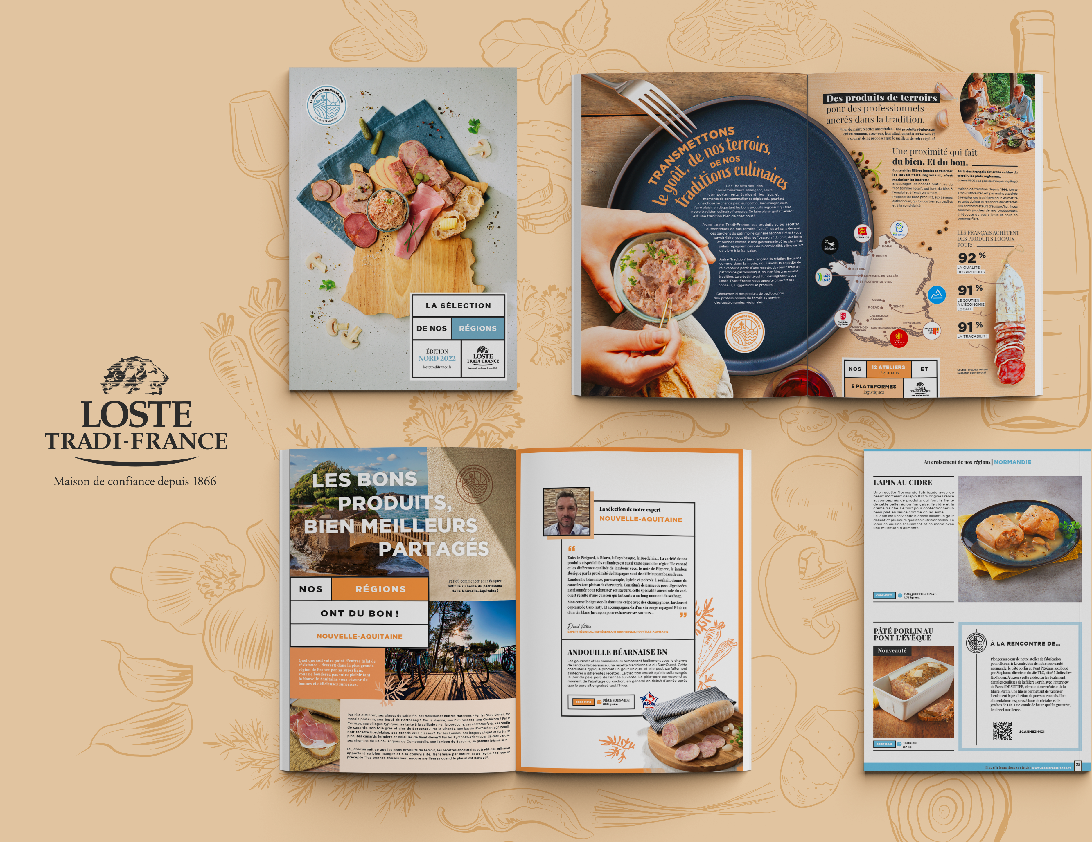Projet réalisé pour l’agence Médiapilote Rennes pour son client Loste Tradition France #Concept KV #illustrations #Ligne graphique #DA lors du shooting Catalogue de produits traiteur régionaux